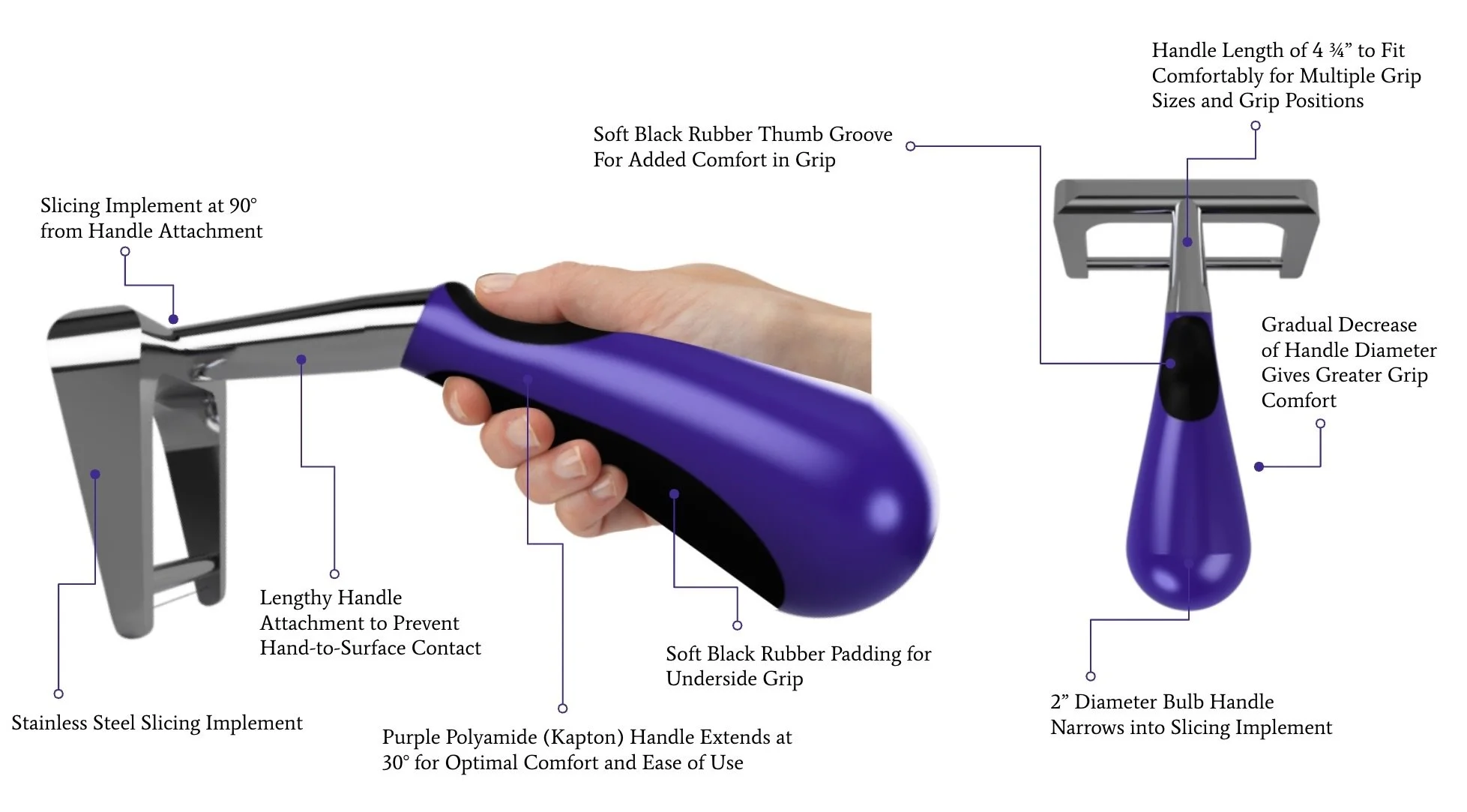 Tool shape and materials should be no slip and contoured/shaped to be held comfortably