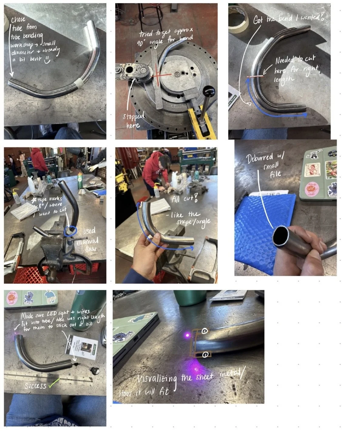 Processes: Sketch Ideation, Prototyping, CAD/Fusion 360, Slip Roller, Sheet Metal Bending, Water Jet, Cold Joining, Corner Notcher, Mill, Tube Bending, Bead Blasting, Sanding/Finishing