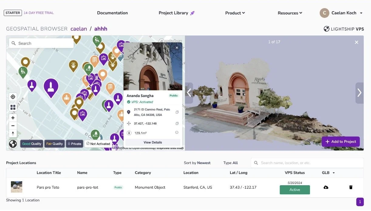 Experimented with integrating a custom Stanford Tree mascot (.glb) from 8th Wall into the Lightship geospatial environment, troubleshooting asset pipelines and placement.