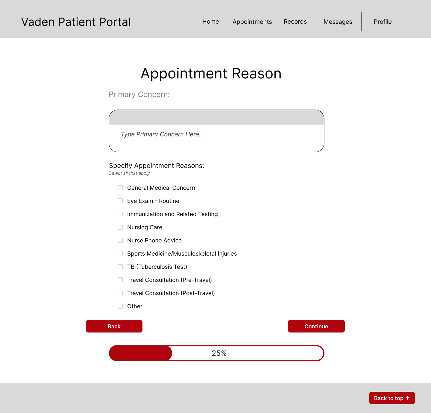 Original/Current Vaden Patient Portal Design: