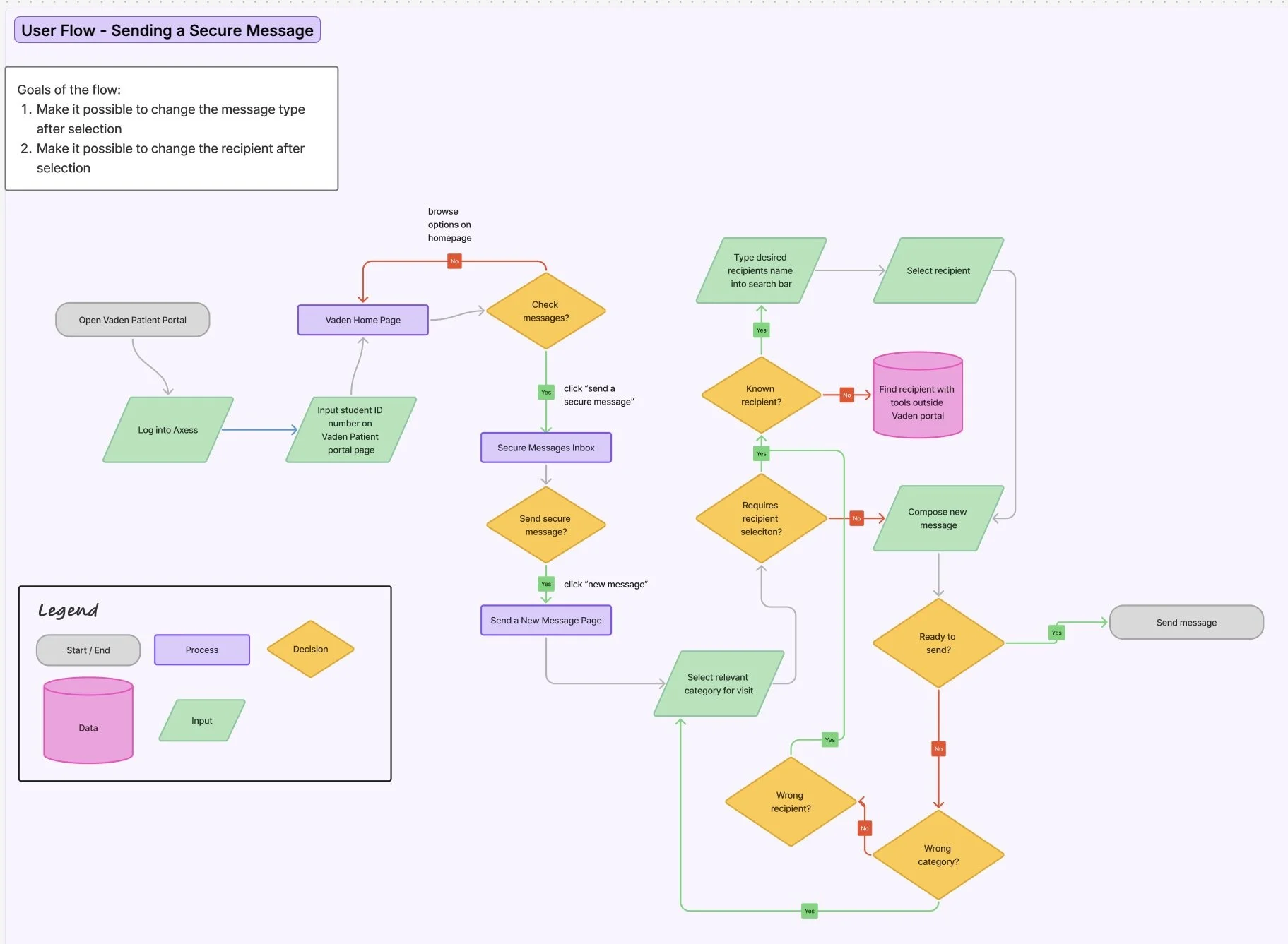 Redesigned the Vaden Patient Portal using heuristic evaluations, user testing and UX/UI mock-ups to improve usability, navigation flow, and overall intuitiveness.
