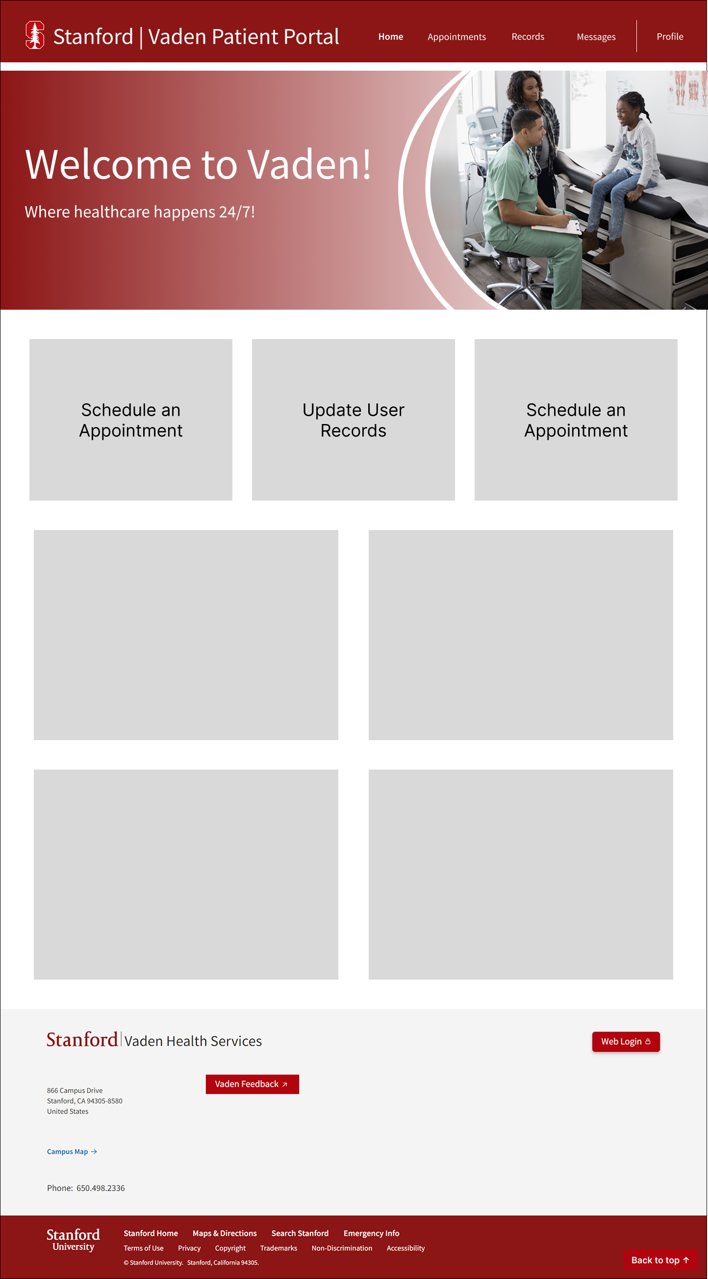 The Vaden Patient Portal is an essential tool for Stanford students (user) to schedule appointments, contact healthcare providers, and upload medical information, among other health-related tasks. The current website is confusing and hard to navigate.